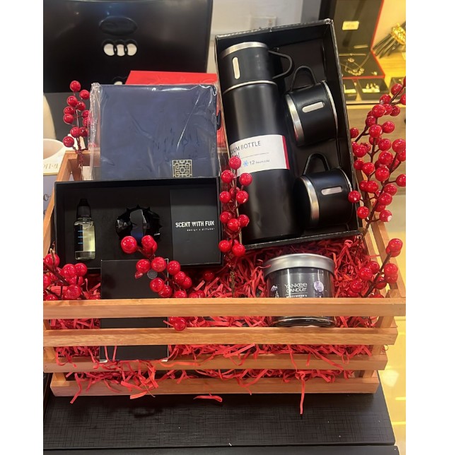 Contents = Journal , Car Diffuser , Card Holder , Yankee Candle 122g , Vacuum Flask Set.