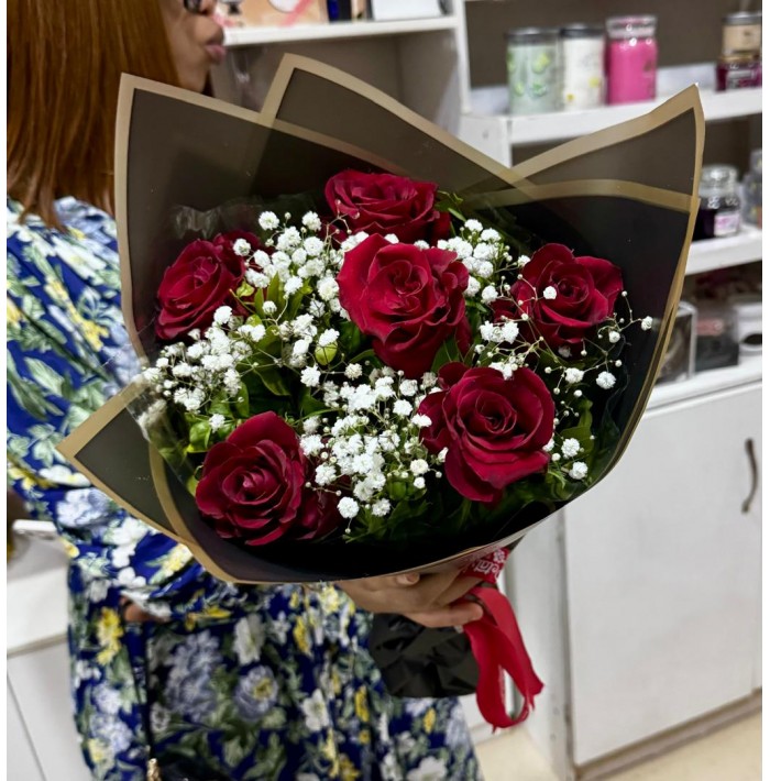 A classic .... 6 red roses with fillers (use size option for bigger bouquets)..